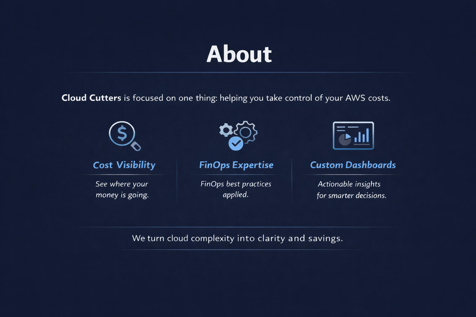 A short walkthrough of how we approach AWS cost visibility, FinOps dashboards, and prioritized optimization — tailored to your environment.